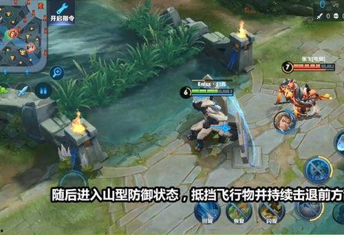 2. 技能展示:视频中对盾山的技能进行了详细的展示。盾山拥有强大的防御能力,他的技能可以有效地保护队友,同时也能对敌人造成致命打击。其中,盾山的大招“山崩地裂”更是让人眼前一亮,瞬间将敌人击飞,为队友创造进攻机会。
